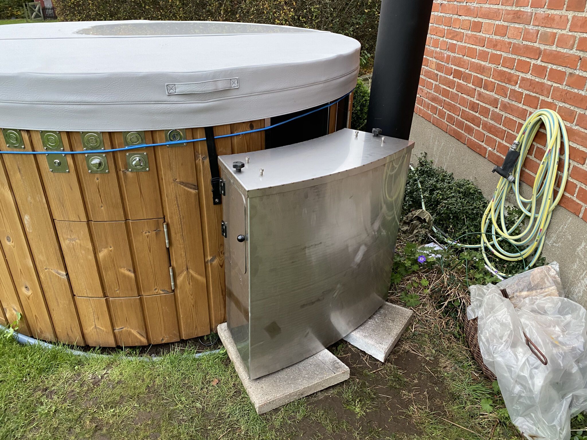 Som en helt særlig detalje, kan du også bruge vores løsning som frostsikring, du indstiller ganske simpelt “kedel” temperaturen på eksempelvis 7 grader, og fyret vil derefter holde temperaturen i karret over 7 grader, og dermed frostfrit. HUSK dog at de ydre dele som rør og slanger kun holdes frostfrie med pumpe hjælp.
